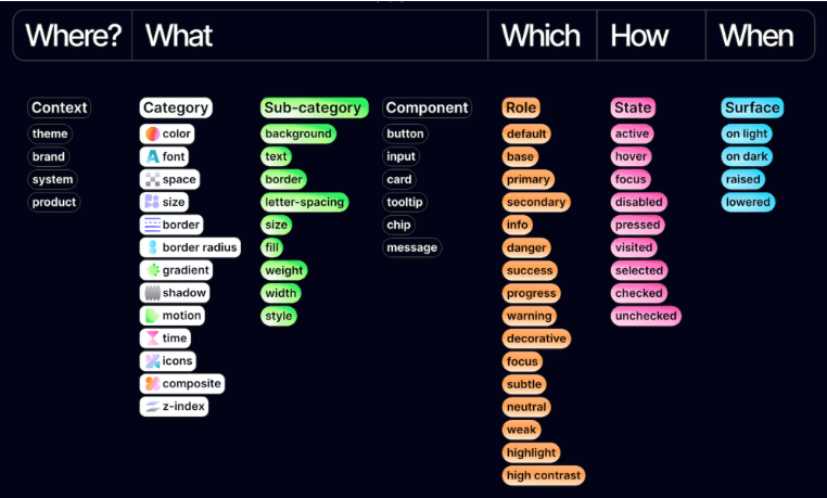 Your naming system must anticipate growth (new components, themes, brands). A flexible taxonomy helps you avoid brittle names that break or need massive refactoring later.